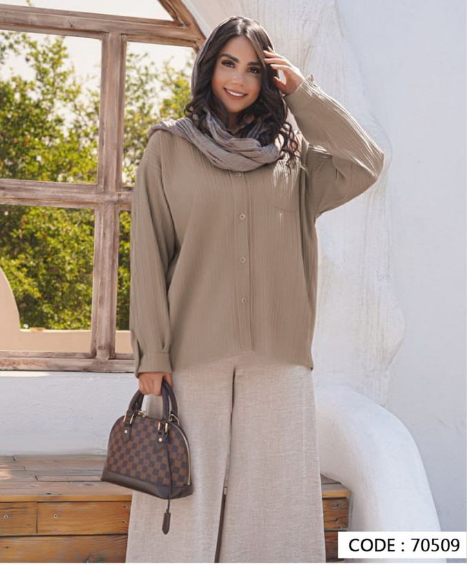 شومیز آستین بلند زنانه کد 70509 با جنس آیوا وارداتی، انتخابی شیک و کاربردی برای استایل روزمره و نیمهمجلسی است.