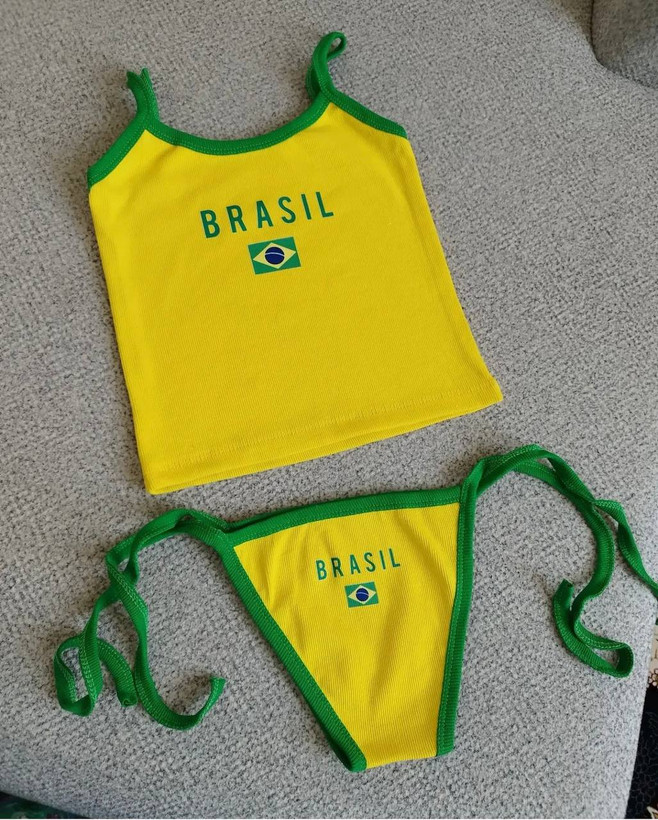 ست سهتیکه طرح پرچم برزیل شامل نیمتنه بندی، شورت بیکینی و شورتک از جنس فانریپ درجه یک است. طراحی خاص و فانتزی این ست، آن را به انتخابی ایدهآل برای استخر، پارتی و استایل ساحلی تبدیل کرده است. این ست در دو رنگ جذاب عرضه میشود: زرد با نواردوزی سبز الهامگرفته از پرچم برزیل و مشکی با نواردوزی سفید. فریسایز مناسب ۳۶ تا ۴۴ بوده و کیفیت بالای پارچه، راحتی و جذابیت را در کنار هم فراهم میکند.
