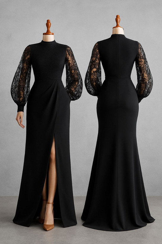 ماکسی بلند مجلسی مشکی با طراحی اندامی و خوشفرم، دوختهشده از پارچه کرپ و دانتل باکیفیت است. این مدل دارای آستینهای دانتل، یقه گرد پوشیده و چاک جلوی کار است که استایل ظریف و شیکی به آن میدهد. قد لباس از سرشانه 146 سانت بوده و فری سایز مناسب 38 تا 42 است. پشت کار زیپدار بوده و تنخور فوقالعادهای دارد؛ انتخابی ایدهآل برای مراسم رسمی، جشنها و مهمانیهای خاص.