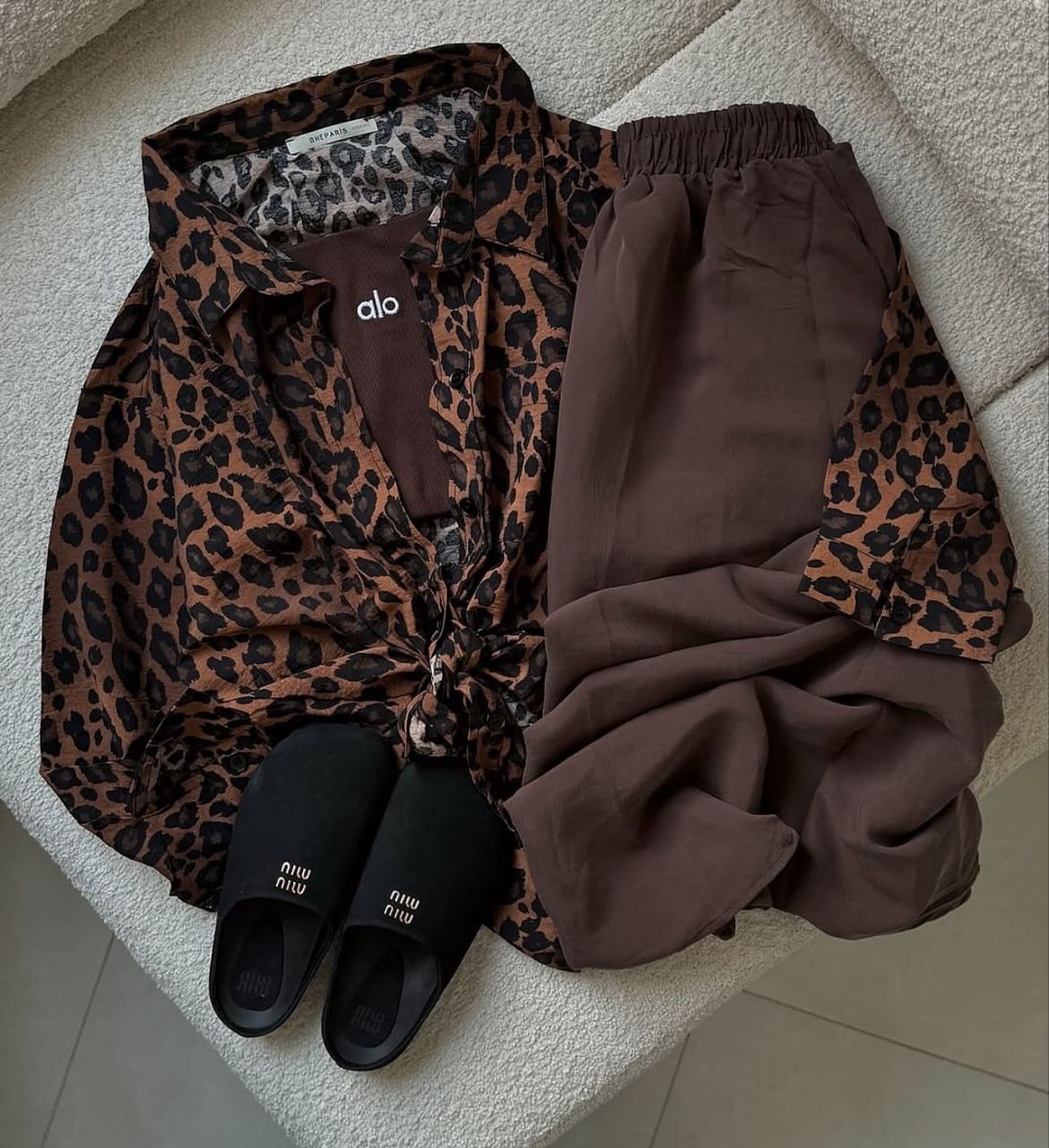 شومیز پلنگی زنانه با طراحی خاص و استایلی شیک، انتخابی ایدهآل برای استایل روزمره و دورهمیهای دوستانه است.